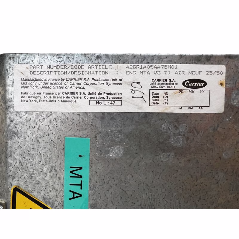 Module de traitement d’air Carrier – 2,8kW – 4 tubes – 350m³/h / Ventilo-convecteur / Carrier / 42GR / 42GR1A05AA75M01 / ENS MTA V3 T1 AIR NEUF 25/50 – Module de Traitement d’Air pour systèmes à débit variable / P000000834