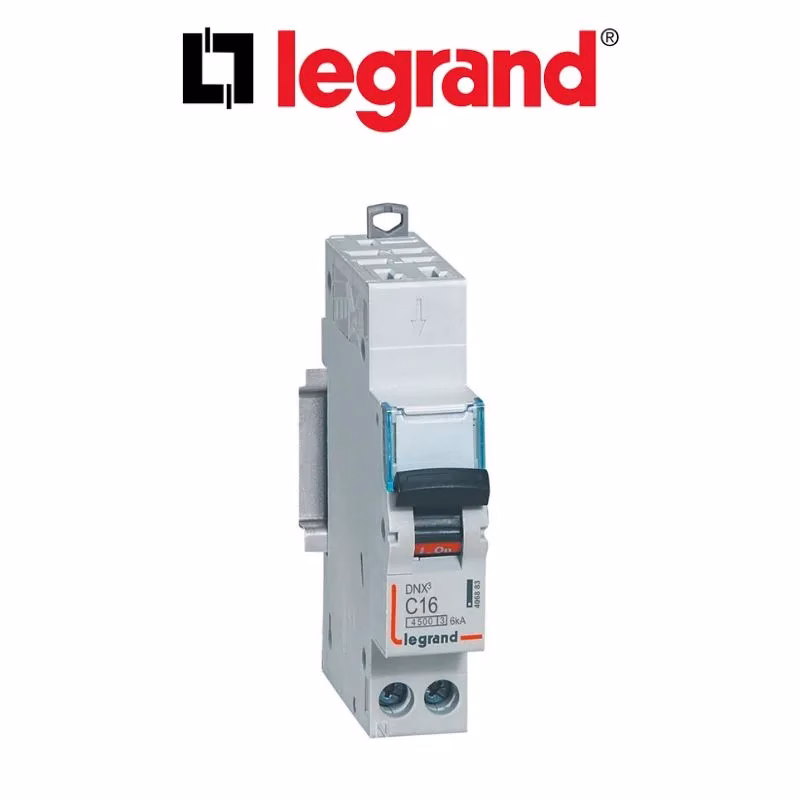 Disjoncteurs / Legrand / DNX³ / 406883 / Disjoncteur Phase+Neutre DNX³4500 6kA arrivée borne automatique sortie borne à vis – 1P+N 230V~ 16A courbe C – 1 module / P000000531 / 3245064068833