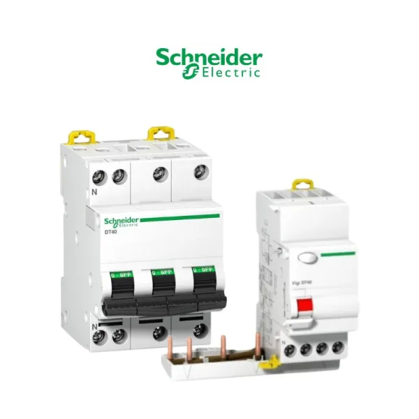 Disjoncteurs / Schneider / Prodis / A9N21066 + A9N21471 / Prodis DT40 – disjoncteur – 3P+N – 20A – courbe C – 6kA + ProDis Vigi DT40 – bloc différentiel 3P+N 25A 300mA instantané type AC 230-415V / Equivalent à A9P22720 + A9DP7716/A9DA7716/A9DP7720 / P000000607