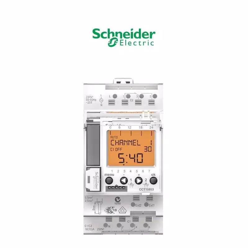 Interrupteurs horaires / Schneider / Acti 9 / CCT15723 / IHP+ – interrupteur intuitif – 2 canaux – 7J 24H – FR, GB, IT, ES, DE, PT / Equivalent à CCT15553 / P000000691