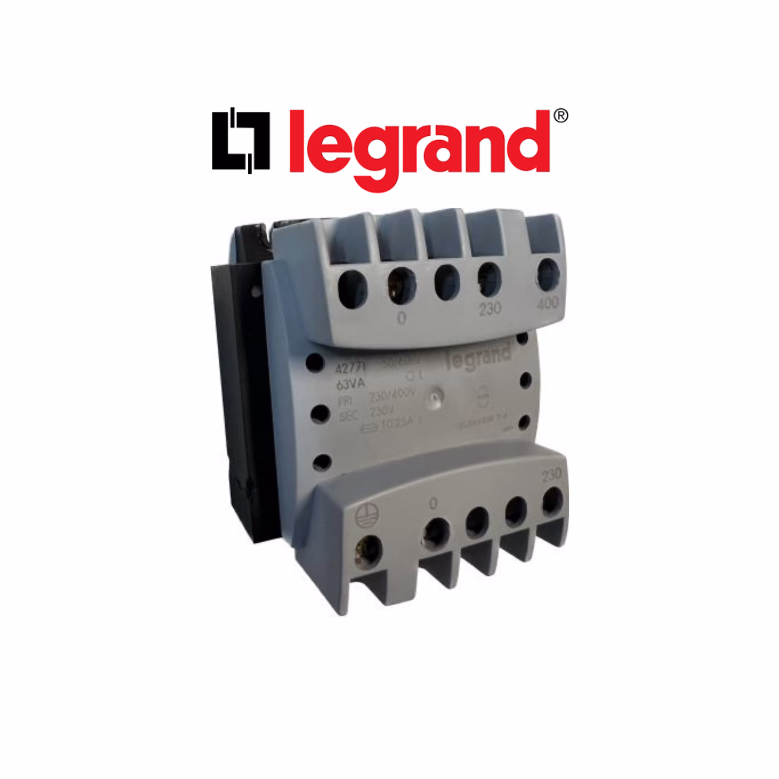 Transformateurs de commande et sécurité / Legrand / 42771 / Transformateur de commande et sécurité à connexion à vis primaire 230V à 400V et secondaire 230V~ – 63VA / P000000303 / 3245060427719