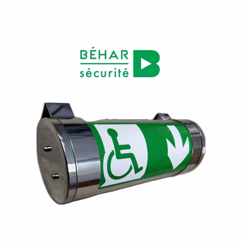 BAES d’évacuation étanche Sati – 45lm/1h – 0,6W – IP66 – IK10 – PMR Flèche vers le bas / BAES evacuation / Behar / Cylindrik / 43260 / CYE 60L / P000000526